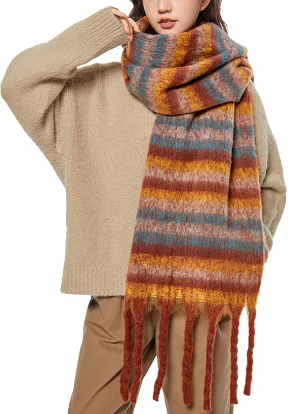 Large Chunky Plaid Scarf Checked Colorful Oversized Scarves Soft Big Cashmere Wool Thick Winter Warm Blanket Women