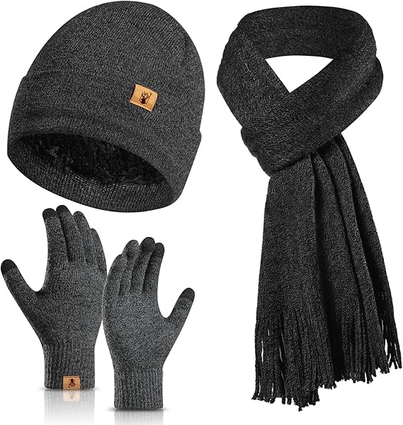 Winter Knit Beanie Hat Neck Warmer Scarf and Touch Screen Gloves Set 3 Pcs Fleece Lined Skull Cap for Men Women