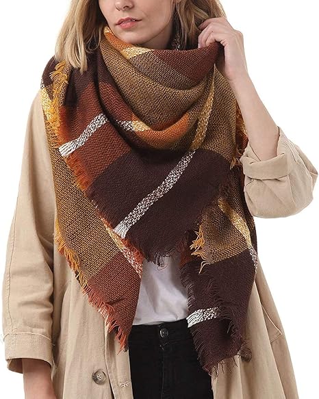 Women's Plaid Blanket Winter Scarf, Warm Cozy Tartan Wrap Oversized Shawl Winter Scarves for Women