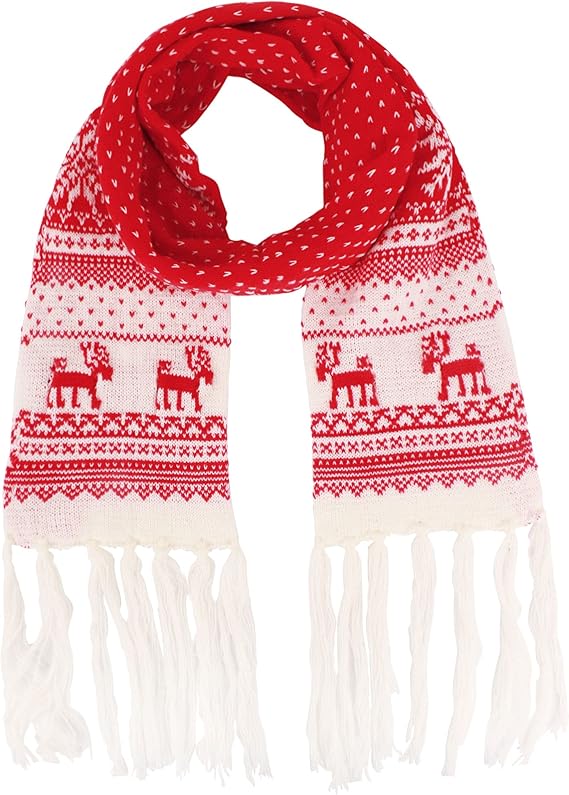 Unisex Christmas Reindeer Snowflake Scarf Fall Winter Warm Knit Long Scarf