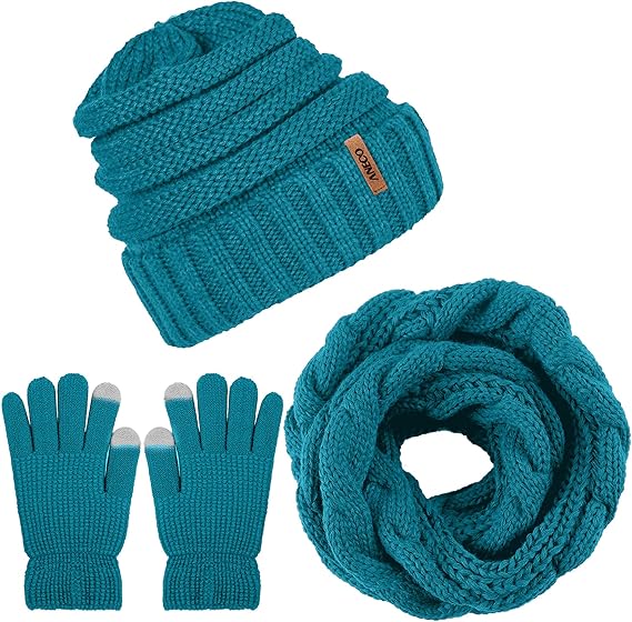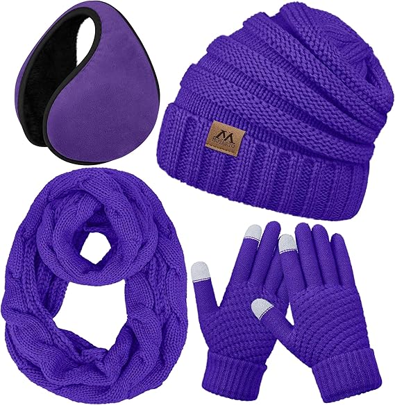 Winter Warm Set Knitted Scarf Beanie Hat Touchscreen Gloves Ear Warmer Cold Weather Gear for Men or Women