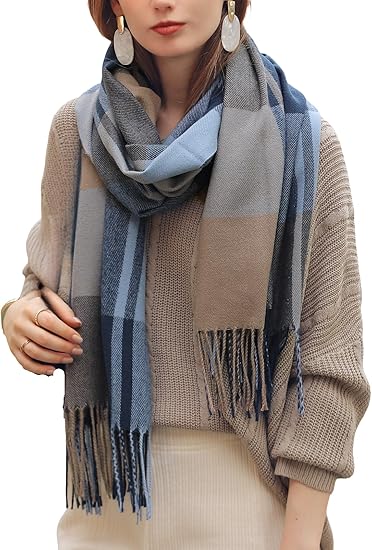 Women's Long Plaid Blanket Scarf Chunky Oversized Winter Fall Warm Scarf Big Tartan Scarves Wrap Shawl Ladies Gifts