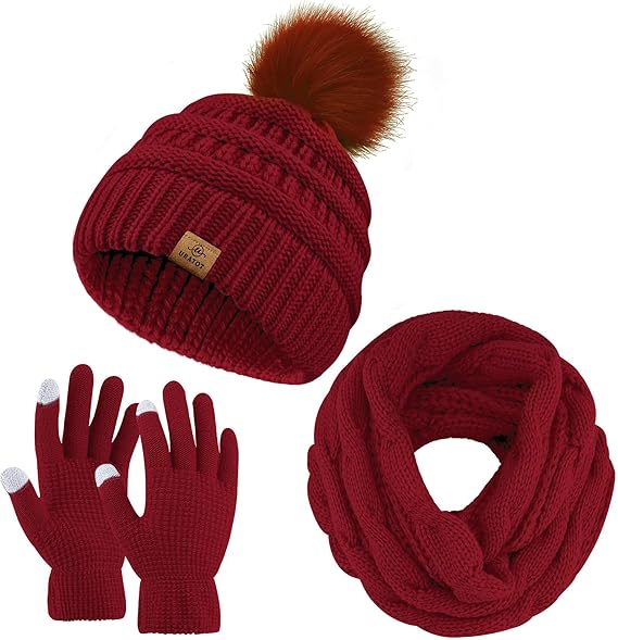 Beanie Hats for Women Beanie Hats Scarf Touchscreen Gloves Set Warm Knit Thick Fleece Lined Skull Cap Gifts for Women