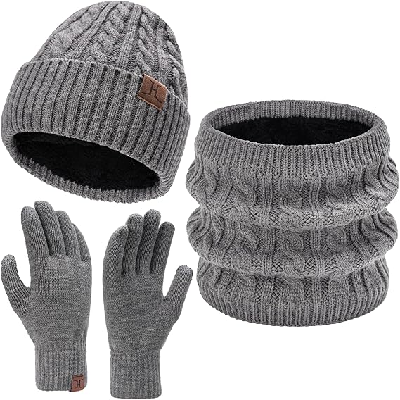 Mens Womens Winter Beanie Hats Touchscreen Gloves Neck Scarf Warmer Set Knit Skull Cap with Fleece Lined Gifts for Men Women