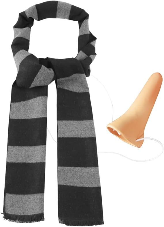 2 Pcs Mens Halloween Cosply Costume Accessories- Black and Gray Scarf 71'' x 8'' with Nose One Size