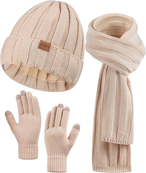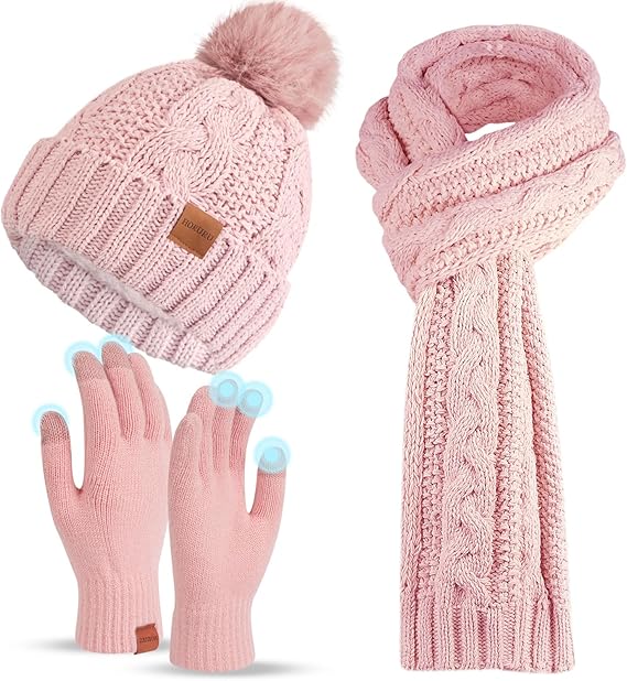 Winter Beanie Hat Scarf Gloves Set for Women,Warm Touch Screen Gloves Christmas Birthday Gifts for Women Girls
