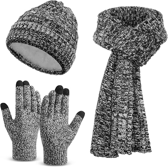 Womens Winter Beanie Warm Knit Hat Long Neck Scarf Touchscreen Gloves Set with Fleece Lined Skull Caps Gifts for Women Men
