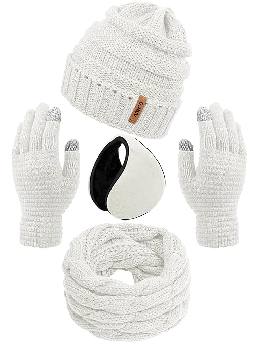 Winter Warm Sets Knitted Scarf Beanie Hat Touch Screen Gloves and Winter Ear Warmer for Men or Women