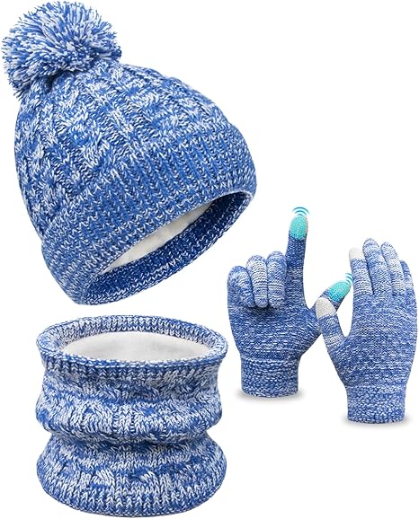 Kids Winter Hat Gloves Scarf Set, Toddler Children Girls Boys Beanie Hat Knitted Mittens & Neck Gaiter Warmer for Kids 3-10