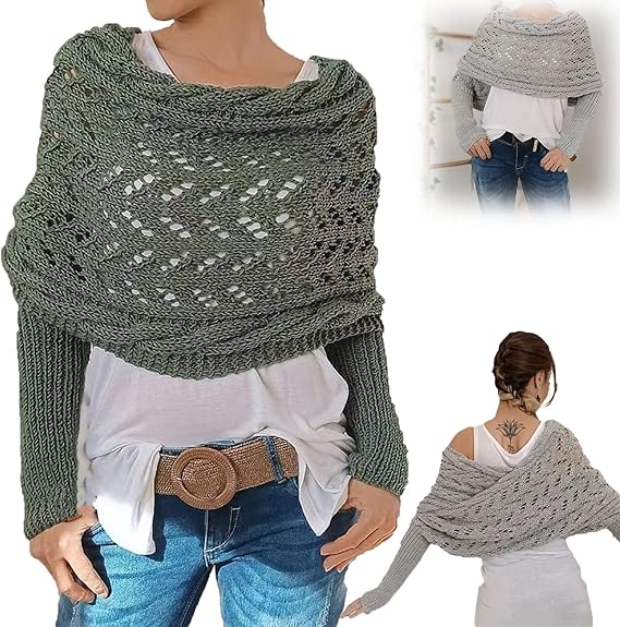 Knitted Cable Wrap,Shrugs For Women,Knitted Wrap,Scarf With Sleeves For Women,Sweater Scarf with Sleeves
