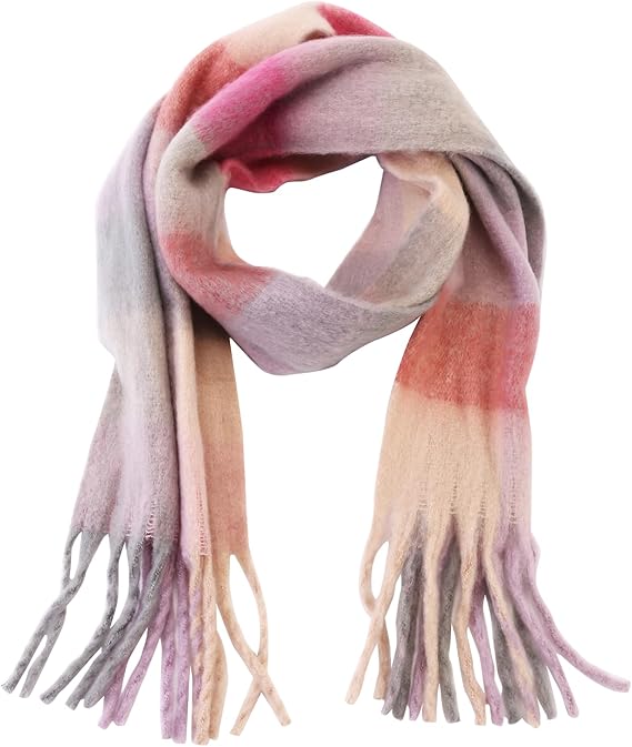 Womens Fall Winter Scarf Plaid Tassel Soft Warm Blanket Scarves Womens Shawl Wraps
