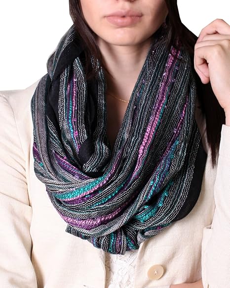 (15 Colors) Shimmer Sparkle Infinity Scarf, Women's Festival Bliss Lightweight Fashion Shawl