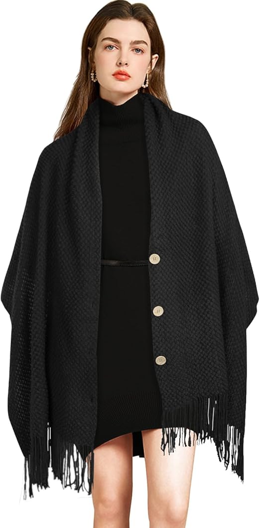 Women Capri Poncho Sweater Cropped Versatile Shawl Soft Knit Shawl Wraps Cowl Neck Ponchos Short Tops