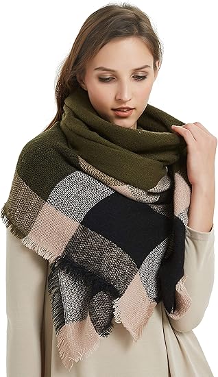 Fall Winter Scarf Classic Tassel Plaid Tartan Warm Soft Chunky Large Blanket Wrap Shawl Scarves for Women