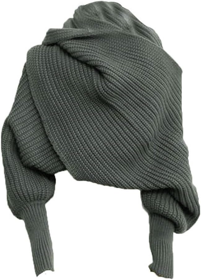 Knit Shawl Wrap for Women - Ladies Fringe Knitted Poncho Cardigan Cape - Winter Autumn Warm Scarf Shawl with Sleeves (Dark Gray)